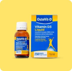 OsteVit-D Liquid contains vitamin D3 1000 IU per 0.2mL. It is a convenient way to take vitamin D for those who find swallowing tablets difficult and has a great caramel taste.