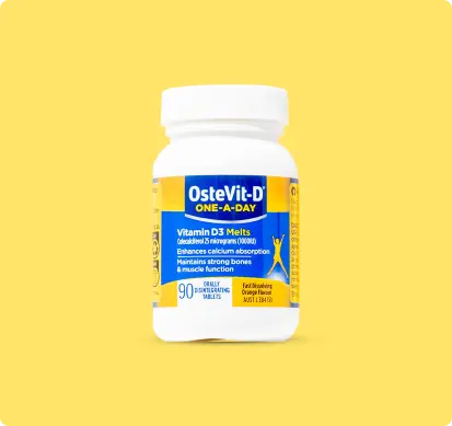 OsteVit-D One-A-Day Vitamin D3 Melts contain Vitamin D3 1000 IU to enhance calcium absorption, maintain strong bones and muscle function and support healthy immune system function.