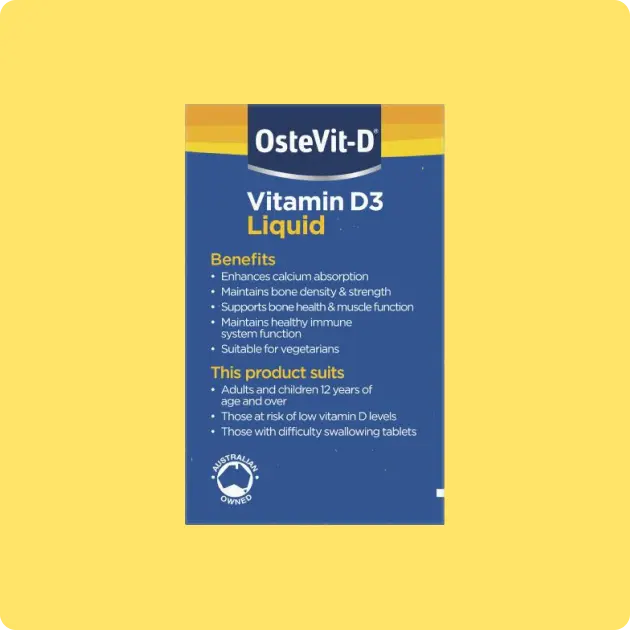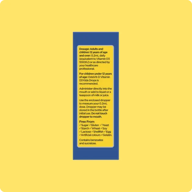 OsteVit-D Liquid contains vitamin D3 1000 IU per 0.2mL. It is a convenient way to take vitamin D for those who find swallowing tablets difficult and has a great caramel taste.